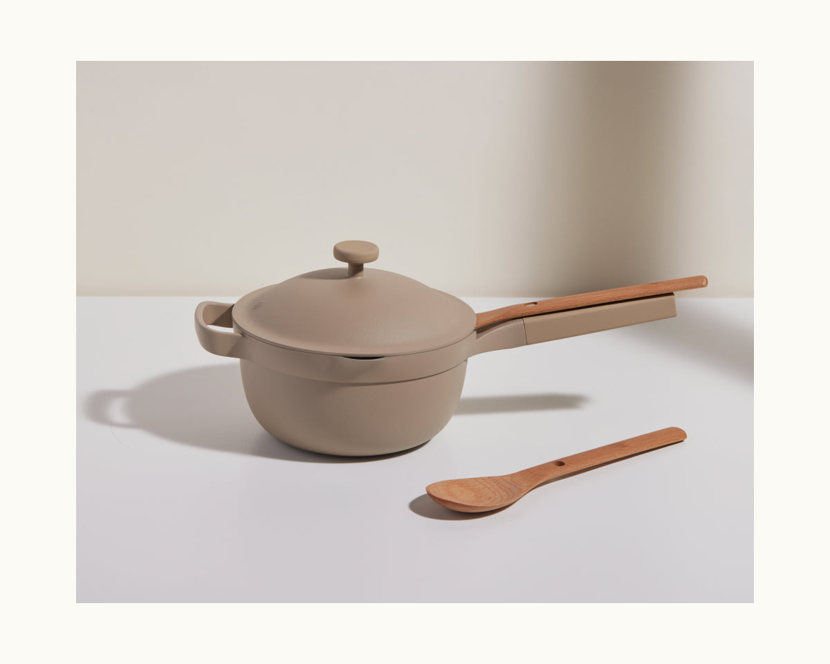 These 100% natural beechwood spoons are your best friends for stewing, stirring, taste testing, and more. Choose from Notched (designed to notch not one but two ways on your Perfect Pot) or Nested (designed with a node hole so it nests neatly onto your Mini Always Pan, Mini Perfect Pot, Original Always Pan, or Cast Iron Always Pan). Comes in a set of two because you’ll never want to be without one!